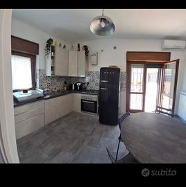 Soggiorno con angolo cottura, bagno, giardino pavimentato