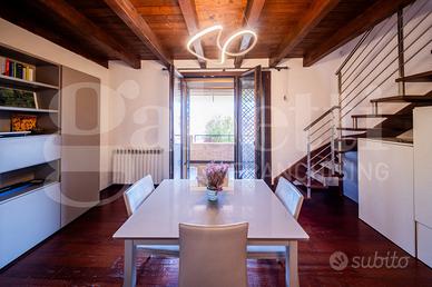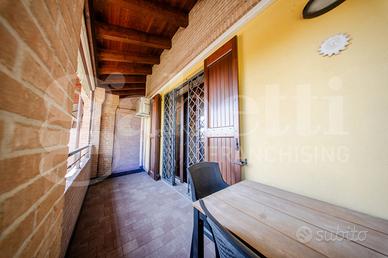 In splendida zona pedecollinare, immersa nel verde e nella tranquillità, proponiamo in vendita un appartamento situato in via Dondarini, a San Martino in Casola, all'interno di un elegante borgo di palazzine in pietra a vista di recente costruzione. L'appartamento si trova al primo ed ultimo piano ed è caratterizzato da finiture di pregio e ambienti luminosi, ben distribuiti e accoglienti. L'immobile è composto da ingresso su soggiorno con ampia porta finestra, che dà accesso al balcone abitabile loggiato e coperto, cucina abitabile, camera matrimoniale e bagno. Dal soggiorno si accede, tramite scala interna, al piano sottotetto, dove è stata ricavata una seconda camera, impreziosita da un suggestivo tetto in legno a vista. Completa la proprietà, al piano interrato, un ampio garage di 45 mq. Soluzione ideale per chi desidera vivere in un contesto tranquillo e immerso nella natura, senza rinunciare a comfort e qualità costruttiva.