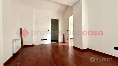 L'appartamento si sviluppa al primo e secondo piano ed è composto al primo piano soggiorno con angolo cottura, disimpegno, due camere e due bagni, al secondo piano disimpegno, bagno, soffitta praticabile e ripostiglio. Il riscaldamento è centralizzato.