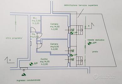 L'impianto di riscaldamento/condizionamento che serve l'immobile è autonomo, di ottima qualità e a basso consumo. L'altezza dei soffitti è di metri 2,00 come evidenziato in planimetria.