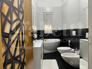 Il disimpegno conduce alla zona notte, con le tre grandi camere da letto e i due bagni, entrambi con antibagno.