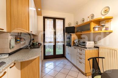 - Cucina abitabile dotata di porta finestra, con accesso al giardino.
