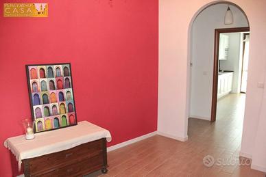 L'abitazione che gode di un' esposizione a sud, fruibile da un lungo balcone, si presenta con un ampio ingresso, salone, cucina abitabile, due camere da letto e un bagno con doccia e lavanderia.