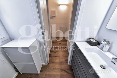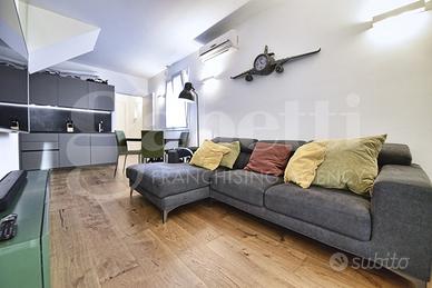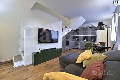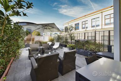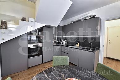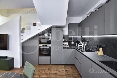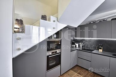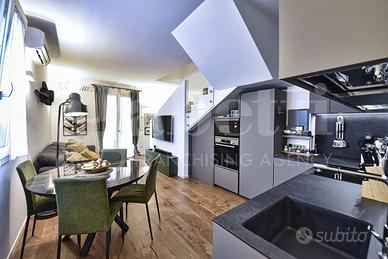 MONZA/SAN BIAGIO: Raffinata e funzionale soluzione abitativa su due livelli di circa 60 mq commerciali, situata al primo piano (senza ascensore) di un corpo di fabbrica oggetto di radicale recupero (completato nel 2021, classe energetica A4). La soluzione, dalla TRIPLA ESPOSIZIONE, risulta così articolata: ingresso living sull'open con cucina a vista e sfogo SULL'AMPIO TERRAZZO PRIVATO di circa 50 mq, perfetto per i momenti conviviali e di relax open air. Il primo livello è collegato al secondo (mansardato) da una comoda scala interna che porta al sottotetto s.p.p.. Bagno, lavanderia e posto auto scoperto in dotazione. FINITURE E MATERIALI DI PREGIO (extracapitolato: listoni di parquet in rovere rivestono l'intera abitazione, giochi cromatici e materici legno/cristallo/muratura valorizzano luminosità e spazi), DOTAZIONI IMPIANTISTICHE DI LIVELLO (riscaldamento e raffrescamento a pavimento con caldaia a condensazione/pompa di calore, fotovoltaico), distribuzione razionale e sapientemente ottimizzata di tutti gli spazi, ottimo l'isolamento termo-acustico.