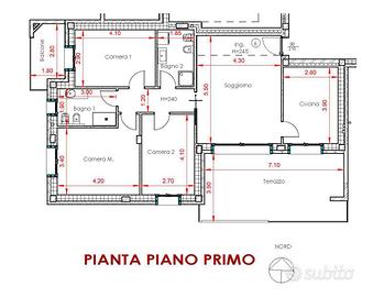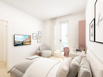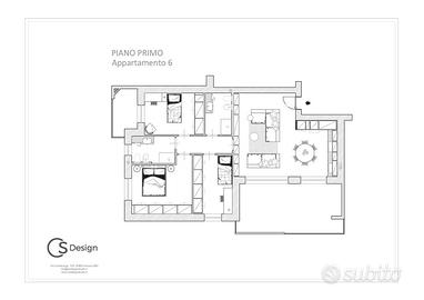 APPARTAMENTO 6: Quattro locali, posto al primo piano - L'appartamento è composto da luminoso soggiorno e cucina abitabile entrambi serviti da splendido terrazzo di 30 mq., il disimpegno conduce nella zona notte dove troviamo tre camere, doppi servizi e balcone.