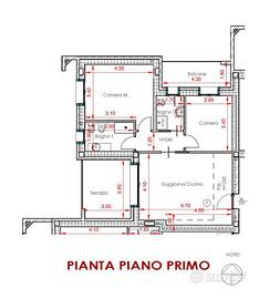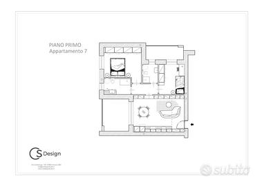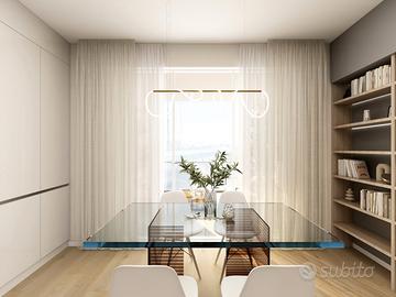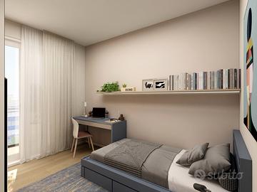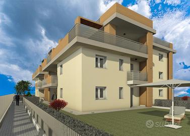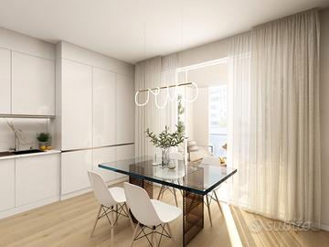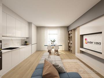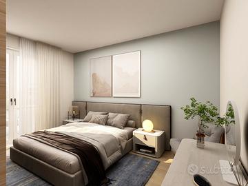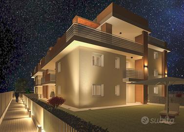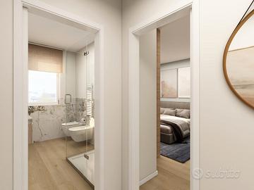 APPARTAMENTO 7: Tre locali, posto al primo piano - L'appartamento è composto da ingresso nella zona living servita da splendido terrazzo loggiato di 17mq, disimpegno, due camere e doppi servizi oltre balcone.