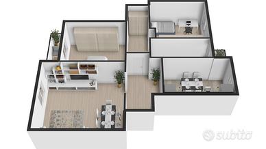 Con una superficie commerciale di 105 m², l'appartamento si trova al primo piano ed è composto da un ampio ingresso che separa la zona living dalla cucina abitabile, dotata di accesso a un comodo balconcino di servizio. La zona notte include una camera matrimoniale e una cameretta, perfetta per famiglie o per ospiti. Il bagno finestrato completa questa offerta, mentre la cantina di pertinenza aggiunge ulteriore valore.