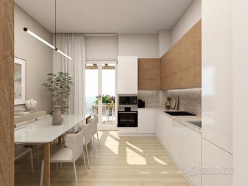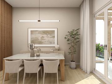 La zona giorno gode di una TRIPLA esposizione che garantisce una luminosità eccezionale a tutte le ore del giorno, la disposizione razionale dona spazi ampi alla preparazione dei cibi, alla zona pranzo e al living. Infine l'accesso sul bellissimo terrazzo attrezzato di predisposizione caldo/freddo per l'installazione di una pergola bioclimatica, parapetto in vetro fumé, impianto di irrigazione e illuminazione Led.