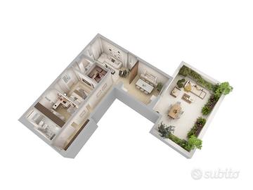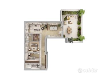 Il progetto prevede la realizzazione di appartamento di 3 locali , doppi servizi, bellissimo TERRAZZO di 50 mq, posto auto coperto.