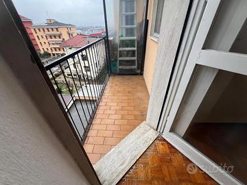 Appartamento, piano alto, con ascensore, composto da ingresso, cucina abitabile, soggiorno con balcone, ripostiglio, bagno con vasca, camera matrimoniale con balcone, cantina, possibilità di box. Con una piccola modifica, l'appartamento può diventare ingresso, soggiorno con angolo cottura e balcone, due camere matrimoniale, una con balcone, ripostiglio, bagno, cantina, possibilità di box. Libero subito