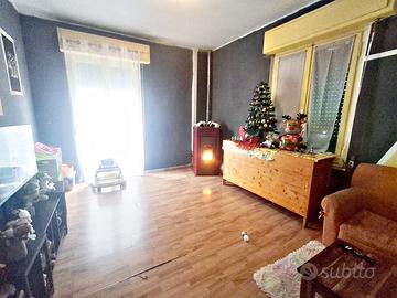L'abitazione si compone di ampio ingresso, soggiorno luminoso con stufa a pellet, cucina abitabile con accesso diretto al balcone, due spaziose camere matrimoniali e due bagni entrambi finestrati.