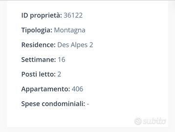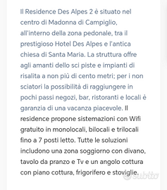 Appartamento x 2 persone in multiproprietà a Madonna di Campiglio, settimana n. 16. Descrizione nelle foto allegate.