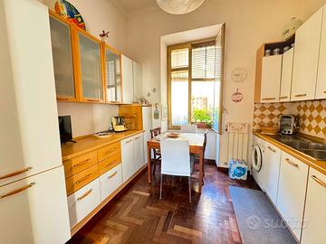 L'immobile, di circa 90 mq, è situato al 5° piano di uno stabile signorile dotato di ascensore e servizio di portierato attivo per l'intera giornata. La soluzione si presenta in ottime condizioni interne, pronta per essere abitata, con ambienti ben distribuiti e particolarmente luminosi grazie al doppio affaccio parallelo che garantisce anche un'eccellente aerazione.