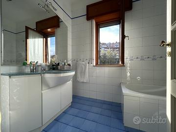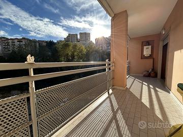 L'unità abitativa, posta al quarto piano con ascensore, vanta ampie balconate con una superficie totale di 23 metri quadrati. La disposizione interna di circa 120 metri quadrati comprende un ingresso accogliente, un ampio salone doppio, due camere da letto, una cucina abitabile e due bagni.