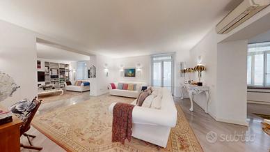 Una spaziosa dimora di 240mq distribuita su due livelli, situata al terzo piano di un elegante edificio d'epoca con ascensore.