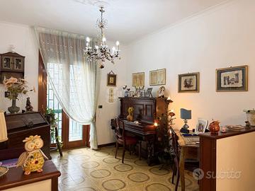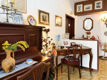 L'immobile, di circa 130 mq interni, si distingue per la sua distribuzione armoniosa e per ambienti ampi e luminosi. L'ingresso accoglie in un delizioso salottino, ideale come zona di rappresentanza o accoglienza, che conduce a un elegante salone, perfetto per momenti conviviali e di relax. La zona notte comprende una confortevole camera matrimoniale e uno studio arricchito da una funzionale cabina armadio, pensato per chi desidera uno spazio riservato e ben organizzato. Completa la proprietà un ulteriore ambiente versatile, utilizzabile come seconda camera o salone, adattabile alle diverse esigenze abitative.