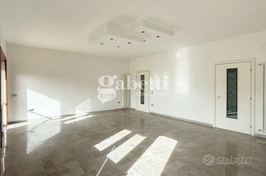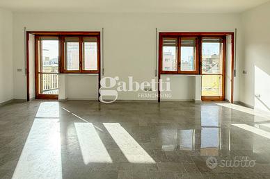 L'immobile, posto al quarto piano di un edificio servito da ascensore, si presenta in ottime condizioni e pronto all'uso. Con una superficie interna di circa 135 mq e ulteriori 35 mq di balconate, la casa si distingue per la distribuzione funzionale degli ambienti e la grande luminosità garantita dal piano alto e dalla doppia esposizione. L'ingresso principale, ampio e accogliente, introduce a un salone living con doppie apertura e con accesso diretto a un balcone spazioso e soleggiato. Il secondo ingresso, invece, conduce alla cucina abitabile, anch'essa di generose dimensioni e servita da un'ulteriore balconata vivibile.