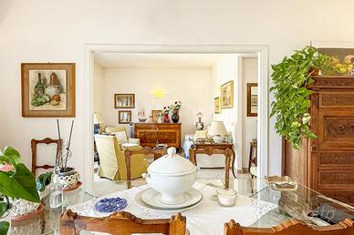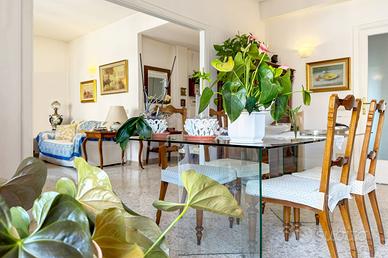 Si compone di comodo ingresso, salone collegato a una sala da pranzo, cucina abitabile, due ampie camere da letto e due bagni, di cui uno in camera, oltre a un pratico vano ripostiglio.