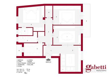 L'abitazione, di circa 90 mq calpestabili oltre balconi, è caratterizzata da un'ottima luminosità grazie al piano alto e alla doppia esposizione.