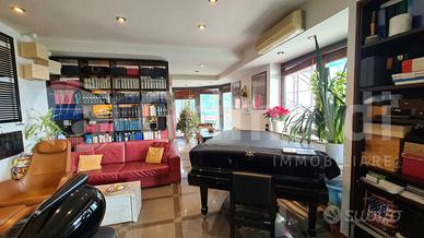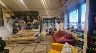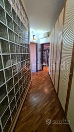 L'appartamento si trova all'interno di uno stabile di edilizia privata in cemento armato, dotato di ascensore e servizio di portineria per garantire comfort e sicurezza ai suoi abitanti. L'ingresso condominiale accoglie gli ospiti in un ambiente curato e ben tenuto, mentre l'appartamento stesso si compone di un ampio salone con cucina a vista, due camere da letto, due bagni e un pratico ripostiglio.