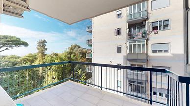 La distribuzione interna è così composta: ampio ingresso, soggiorno doppio, cucina abitabile, tre camere da letto (tutte con accesso ai balconi) e due bagni. Gli ambienti risultano ampi, luminosi e ben distribuiti, garantendo comfort e funzionalità.