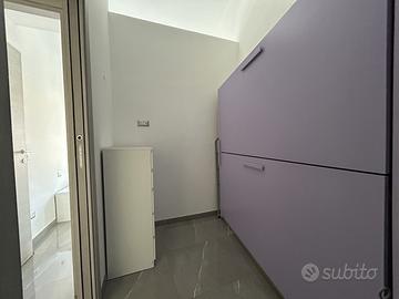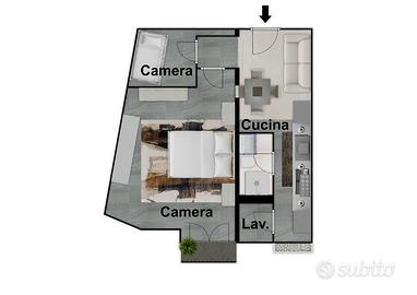 L'ingresso si apre sulla zona giorno, dove si trova la cucina dotata di un balcone alla romana che affaccia esternamente e garantisce una buona ventilazione. La parte notte è composta da una camera da letto luminosa con accesso a un balcone, e da una cameretta che può essere utilizzata come studio, stanza singola o guardaroba, a seconda delle esigenze. Completano la proprietà un bagno e un ambiente separato dedicato alla lavanderia.
