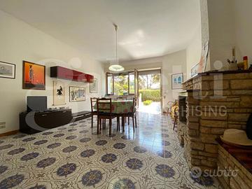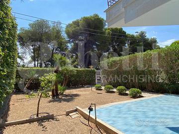 SANTA CATERINA - Nella parte alta dell'incantevole marina di Santa Caterina proponiamo in vendita, in esclusiva, villino semindipendente al piano terra con giardino perimetrale. La soluzione, pur facendo parte di un più ampio complesso di sole quattro unità abitative, non sostiene spese condominiali avendo, tra l'altro, tutte le utenze autonome. All'immobile si può accedere sia dall'ingresso in comune con le altre unità, sia direttamente dal giardino di pertinenza. Dispone di un luminoso soggiorno con camino, cucinino con porta finestra, disimpegno, due ampie camere da letto e bagno finestrato. Completa la proprietà un box auto di oltre 30 mq al piano seminterrato, raggiungibile dall'interno del fabbricato. Da vedere!