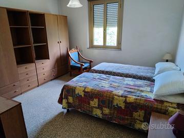 Appartamento di 110 metri quadrati calpestabili, ammobiliato, composto da ampio salone di 45 metri quadrati con camino e doppio accesso alla terrazza di 46 metri quadrati complessivi, cucina abitabile, ampia ed idonea a pranzare all'interno di essa, con accesso ad area estesa della terrazza (con ulteriore lavabo esterno) ideale per colazioni/cene all'esterno con affaccio sul castello di Narni e sul borgo medioevale. Tre camere da letto di cui 2 ampie ed una terza più piccola eventualmente convertibile in area studio. Doppi servizi di cui uno con vasca da bagno e l'altro con doccia. Impianti a norma, con riscaldamento autonomo tramite bombolone esterno e distante dall'abitazione. Infissi in doppio vetro e pavimento in granito sardo. Al piano seminterrato è presente una stanza, sempre arredata con tavolo, sedie, divano etc., utilizzabile come monolocale, deposito, area hobby, di circa 23 metri quadrati servito da ulteriore stanzino/deposito. Inoltre, è presente garage di metri quadrati 29 anch'esso servito da un ulteriore bagno. In adiacenza al garage, esternamente, è presente una zona pavimentata e coperta, di circa metri quadrati 20, utilizzabile come legnaia senza impegnare il garage o utilizzabile come ulteriore riparo al coperto per seconda vettura o moto. In ogni caso, l'ampia area condominiale che dal cancello raggiunge l'immobile, di circa 500 metri quadrati, consente di ospitare numerose vetture. Terreno 950 m.quadrati con olivi