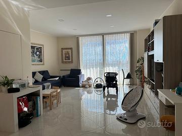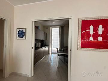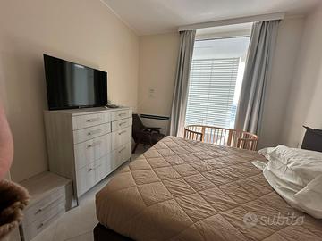 Disponiamo in locazione di signorile appartamento di nuova costruzione nel rinomato edificio di Salerno Centro denominato Crescent, a picco sul mare e con una fantastica vista panoramica da Est ad Ovest. L'immobile, posto ad un 2° piano con ascensore, conta circa 110 mq interni + 30 di terrazzo ed ha come pertinenza un comodo box auto doppio al di sotto del complesso. La soluzione si compone così: soggiorno vista mare, cucina abitabile, due camere da letto, cabina armadio e due bagni di cui uno con vasca idromassaggio; 2 terrazzi panoramici con una splendida vista mare frontale e balaustra in vetro. L'immobile si loca completamente arredato, con tende oscuranti, elettrodomestici, lavatrice ed arredo da esterno., armadiature a muro. SONO RICHIESTE TASSATIVAMENTE REFERENZE DIMOSTRABILI, DA SPECIFICARE GIA' IN SEDE DI RICHIESTA DI APPUNTAMENTO.