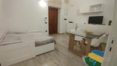 Soggiorno-pranzo confortevole con divano letto. Cucinotto