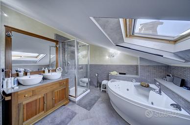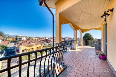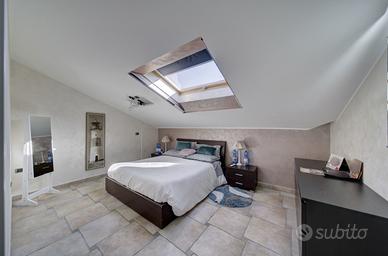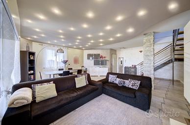 Nole: in piccola palazzina signorile di recente costruzione, proponiamo in vendita un prestigioso attico sito al secondo piano con ascensore disposto su due livelli di circa 190 mq., composto da un ampio soggiorno living di 45 mq. con accesso diretto ad un terrazzo panoramico coperto di 25 mq., cucina abitabile di 16 mq. molto luminosa, perfetta per pranzi e cene in famiglia, ampio servizio con finestra, lavanderia finestrata e ampio balcone vivibile di 12 mq., al piano superiore collegato sia internamente da una comoda e raffinata scala, che dall'esterno attraverso la scala condominiale, troviamo un open space, due camere di cui una con cabina armadio e un servizio con vasca idromassaggio. Il piano superiore dispone di due finestre tradizionali e tre velux originali, che garantiscono un'ottima luminosità naturale. Al piano interrato un locale cantina di 13 mq. intonacata e piastrellata e un locale autorimessa privata di mq. 16 con portone motorizzato. Grazie alla disposizione intelligente e ai materiali di pregio, il piano mansardato offre ambienti multifunzionali, luminosi e perfettamente adattabili a ogni esigenza abitativa. Tutti i serramenti, sia al piano giorno che al piano superiore, sono ad alte prestazioni, con tapparelle elettriche e apertura tradizionale e a vasistas, garantendo massima praticità e luminosità. L'abitazione vanta numerose finiture extra capitolato: * Riscaldamento a pavimento indipendente per piano * Zanzariere su tutti gli infissi * Illuminazione di emergenza su entrambi i piani * Placche e interruttori in alluminio * Quadro elettrico suddiviso per zone e numerosi punti luce e prese TV aggiuntive * Antifurto perimetrale e porte blindate * Cartongessi con illuminazione LED e dettagli di design moderno I bagni offrono comfort esclusivi, con doccia sauna, vasca idromassaggio e molto altro. Lo stabile, moderno e privo di barriere architettoniche, è dotato di ascensore fino al piano interrato, situato in posi