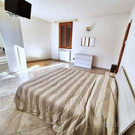 Totalmente ristrutturato di recente, offre comfort e modernità in una superficie di 85 mq abitativi. Situato al primo piano di una villetta bifamiliare, l'immobile è privo di spese condominiali. La zona giorno si compone di un ampio soggiorno e da cucina, con affaccio sull'ampio terrazzo di 35 mq, ideale per cene e pranzi all'esterno o anche per piacevoli momenti di relax. La zona notte è composta da una camera di oltre 20 mq, bagno padronale spazioso e moderno, bagno di servizio / lavanderia.