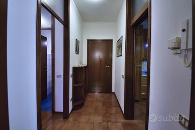 Ingresso, cucina abitabile con accesso diretto al terrazzino lato ovest, ampio soggiorno anch'esso con accesso al medesimo terrazzino, locale lavanderia/ripostiglio, ampio bagno finestrato munito sia di piatto doccia che di vasca e n. 2 comode camere da letto (la camera matrimoniale è munita di balcone di servizio lato est).