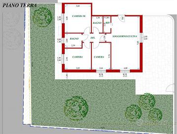 L'immobile sarà composto da luminoso salone openspace di 31 mq con angolo cottura, tre camere da letto (matrimoniale + media + singola di 10 mq), due bagni e stanza ripostiglio/lavanderia, il tutto circondato da ampio giardino privato su tre lati di 260 mq.