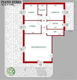 L'immobile sarà composto da luminoso salone openspace di 40 mq con angolo cottura, tre ampie camere, due bagni e stanza ripostiglio/lavanderia di 6 mq, il tutto circondato da resede privato di oltre 100 mq.
