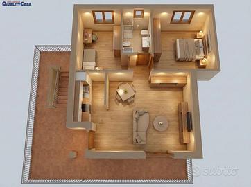 Agenzia immobiliare QualityCASA propone appartamento di 69 m² AL GREZZO a Monte San Vito: primo ed ultimo piano con Ingresso indipendente sul soggiorno con angolo cottura, camera matrimoniale, cameretta, bagno, balcone, terrazzo ed ampio garage.