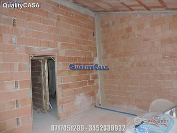 Agenzia immobiliare QualityCASA propone appartamento di 69 m AL GREZZO a Monte San Vito: primo ed ultimo piano con Ingresso indipendente sul soggiorno con angolo cottura, camera matrimoniale, cameretta, bagno, balcone, terrazzo ed ampio garage.
