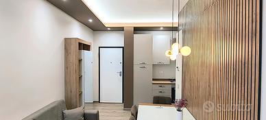 Riferimento 2489 - Museo San Domenico in Esclusiva in palazzina di poche unità senza spese condominiali vendesi delizioso bilocale completamente ristrutturato e arredato, tutto nuovo. L'appartamento è composto da ingresso su soggiorno-pranzo, cucina in nicchia completa di tutti gli elettrodomestici, anche lavastoviglie, ripostiglio-lavanderia, camera da letto matrimoniale, cabina armadio, bagno finestrato con doccia, balconcino con affaccio sulla corte interna dove troviamo un comodo deposito bici in comune. L'appartamento è dotato di caldaia autonoma a condensazione, aria condizionata caldo/freddo. Classe energetica in definizione. Disponibilità immediata.