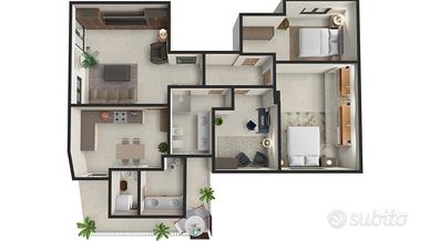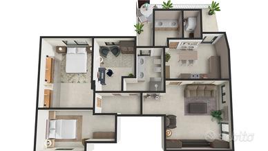 Zona Notte: Tre camere da letto ben distribuite, pensate per una famiglia o per chi ha bisogno di una stanza da adibire a studio.