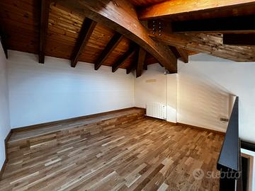 Ampio soggiorno cucina, due camere da letto matrimoniale, due bagni, due balconi, ulteriore camera matrimoniale in mansarda e ampio sgabuzzino.