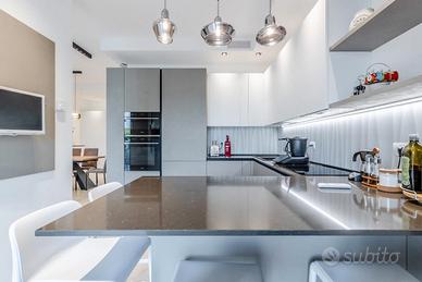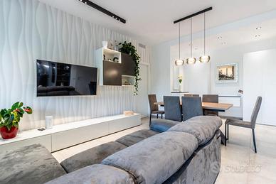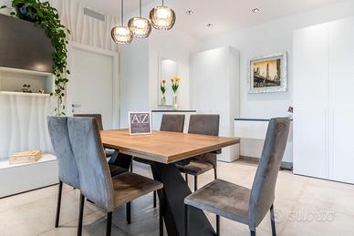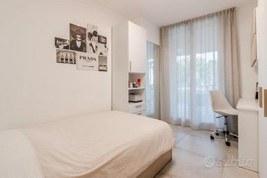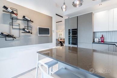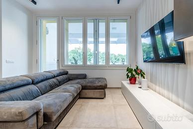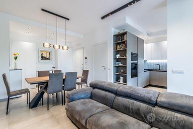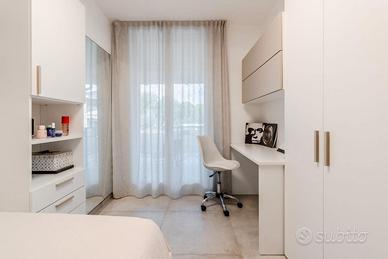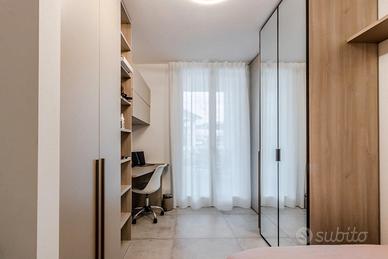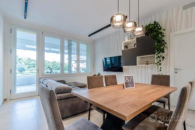 Internamente l'appartamento viene proposto così suddiviso: ingresso diretto con cancello pedonale privato, loggia e ingresso nella zona giorno con cucina a vista con altro accesso al giardino, disimpegno della zona notte, con tre camere da letto matrimoniali, di cui una suitte, con cabina armadi e bagno privato, bagno principale e ripostiglio.