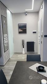 Dettagli come il pavimento a tappeto in grès porcellanato effetto parquet rovere ed soffitto ribassato con cartongesso su tutto l'immobile, con illuminazione led incassata, rendono l'appartamento con un'atmosfera di totale relax.
