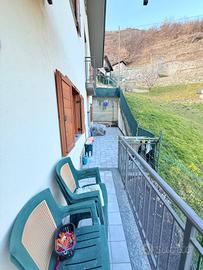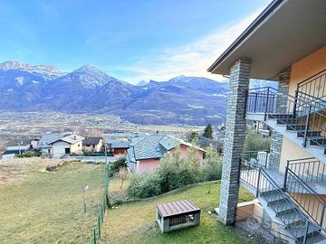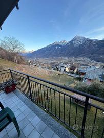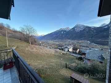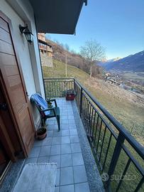 Nella prima collina di Nus in zona tranquilla e molto soleggiata. Si propone, inserito in un piccolo condominio, appartamento ammobiliato con soggiorno ampio e angolo cottura, due camere da letto, doppi servizi dotati di doccia e vasca, grande terrazzo di 50 mq che circonda l'appartamento per godere dell' vista sulle montagne. inoltre l'immobile dispone di riscaldamento autonomo con stufa a idropellet, due posti auto coperti e una spaziosa cantina.