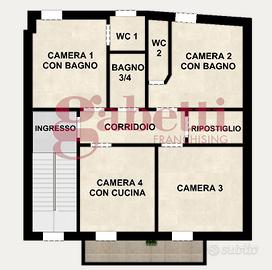 L'agenzia GABETTI di via Galvani propone questo luminoso appartamento situato nel cuore di Olbia. La struttura vanta una superficie di 100 mq, ideale per essere sfruttata come investimento per affitti turistici. La soluzione si trova in un piccolo stabile di poche unità abitative, senza condominio, garantendo privacy e tranquillità. Situato all'ultimo piano, gode di una vista panoramica senza alcun edificio sovrastante, regalando una sensazione di libertà e luminosità. L'immobile attualmente è adibito a b&b e offre la possibilità di una rendita immediata, soprattutto durante i mesi estivi grazie alla sua posizione centrale e alla vicinanza a tutti i servizi essenziali come treno, caffè, fast food, ristoranti, scuole e farmacie. L'appartamento è composto da un accogliente ingresso, quattro camere matrimoniali di cui due con bagno privato, un ulteriore bagno e un pratico ripostiglio. Ogni camera è arredata con gusto e offre il WiFi gratuito, l'aria condizionata e comode dotazioni come TV a schermo piatto, frigorifero, bollitore e macchina da caffè. Il tutto per garantire agli ospiti un piacevole soggiorno a due passi dal centro storico di Olbia, a pochi chilometri dall'aeroporto e dalle più belle spiagge ed attrattive del nord Sardegna. Questa proprietà rappresenta un'ottima opportunità per chi cerca un investimento sicuro e redditizio, pronto per essere affittato e generare un'ottima rendita tutto l'anno. Contattaci per organizzare una visita e scoprire tutte le potenzialità di questo splendido appartamento. Vi ricordiamo che per appuntamenti i nostri agenti sono disponibili dal lunedì al venerdì dalle ore 09:30 alle 12:00 e dalle 16:30 alle 19:00. Inoltre, a vostra disposizione uno staff di consulenza creditizia in grado di proporvi il finanziamento più adatto alle vostre esigenze.