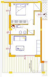Allinterno, lappartamento offre unampia e luminosa zona giorno con cucina a vista, un ripostiglio in veranda, una camera doppia e un bagno, il tutto impreziosito da una grande veranda coperta. Qui è già predisposta una seconda linea impiantistica per la realizzazione di una cucina esterna, che potrà essere eventualmente chiusa con vetrate una volta ultimati i lavori, creando così un ulteriore spazio vivibile in ogni stagione.
