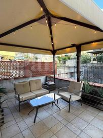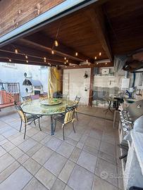 Composto da cucina-soggiorno con caminetto a pellet, due camere da letto, due bagni (di cui uno padronale), ripostiglio, e lavanderia con accesso a terrazzo di 50 mq (metà coperto con cucina esterna e barbecue).
