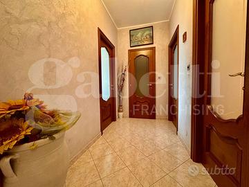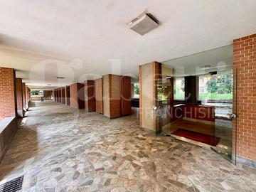 Comodo a tutti i servizi, Gabetti Bruino propone in stabile con portineria ed ampio e curato verde condominiale, appartamento panoramico sito a l sesto piano con ascensore di ingresso, salone, cucina abitabile, due camere, servizio, ripostiglio e due balconi. Al piano interrato un vano cantina. Box auto a parte Euro 15.000. LIBERO SUBITO! Richiesta trattabile.