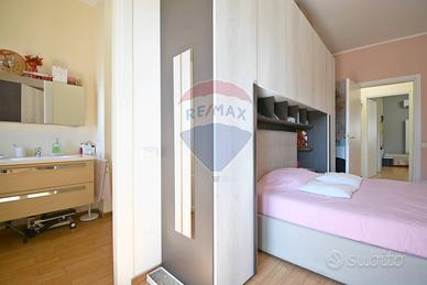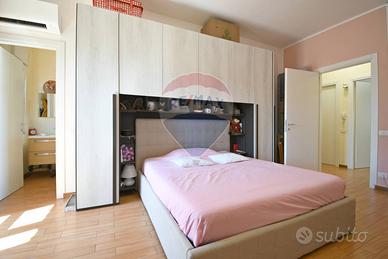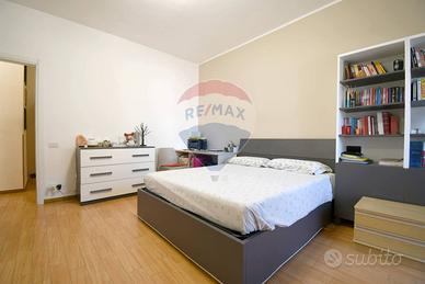 Proseguendo nel disimpegno arriviamo alla zona notte; sulla sinistra troviamo due camere doppie, nella prima è possibile luscita nel terrazzino. Sulla destra abbiamo il primo bagno, finestrato e spazioso; a seguire abbiamo la camera padronale, ampia e confortevole con bagno in camera, finestrato. Dalla camera accediamo inoltre al terrazzino. Nel disimpegno è poi presente un comodo ripostiglio con armadiatura a muro e il secondo bagno.