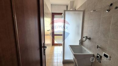 Lingresso si apre verso il soggiorno, reso luminoso da una finestra e una portafinestra che conduce al balcone esposto a sud, accessibile anche dalla cucina abitabile.