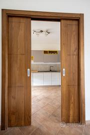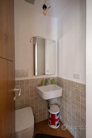 L'ingresso principale, dotato di portone blindato, conduce a un ampio e luminoso salone, perfetto come zona living. Una porta scorrevole collega l'ambiente alla cucina abitabile, completamente attrezzata. Sullo stesso livello è presente un bagno di servizio.